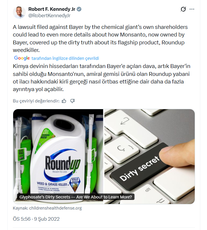 “Amerika’yı Yeniden Sağlıklı Yap” (MAHA) hareketinin de liderliğini yapan ABD Sağlık Bakanı Robert F. Kennedy Jr. da konuyu sosyal medya hesabı üzerinden değerlendirmiş ve açılan davaların Bayer'in sahibi olduğu Monsanto'nun, amiral gemisi ürünü olan Roundup hakkındaki "kirli gerçekleri nasıl örtbas ettiğine dair" detayları ortaya çıkarabileceğine vurgu yapmıştı.