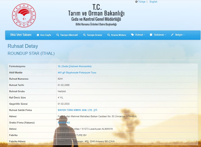 Ankara 18. İdare Mahkemesi, uzman bilirkişi raporlarına dayanarak geçtiğimiz yıl verdiği bir kararla Bayer’in bünyesine katılan Monsanto’nun ürettiği tarım ilaçlarının etken maddesi olan glifosatın çevre ve insan sağlığına zararlı olduğuna karar verdi. Bu kararla Tarım ve Orman Bakanlığı’nın verdiği 2000 tarihli ruhsat iptal edilmiş oldu. Başka bir deyimle bu ürünün Türkiye’de kullanımı yasaklanmış oldu.
